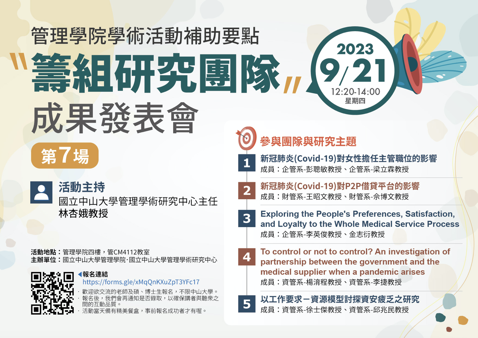 本項服務由管理學院與管理學術研究中心共同提供,凡本院學生、教師、職員申請諮詢服務,皆不收取任何費用,歡迎大家多加利用。 Jointly provided by the College of Management & Management Studies Research Center. Free for all students, faculty, and staff of College of Management.