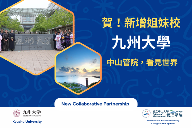 恭賀本院再度攜手國際頂尖學府,拓展學術合作新里程!管院與日本九州大學簽署姊妹校合約,已正式生效,預計自明年起將開放申請,每年選送2名管院學生前往日本九州大學經濟學院交流。...