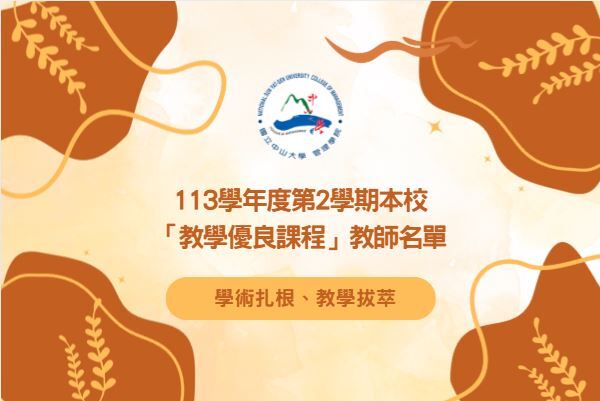 【管院】113學年度第2學期本校「教學優良課程」教師名單 學術扎根 教學拔萃
